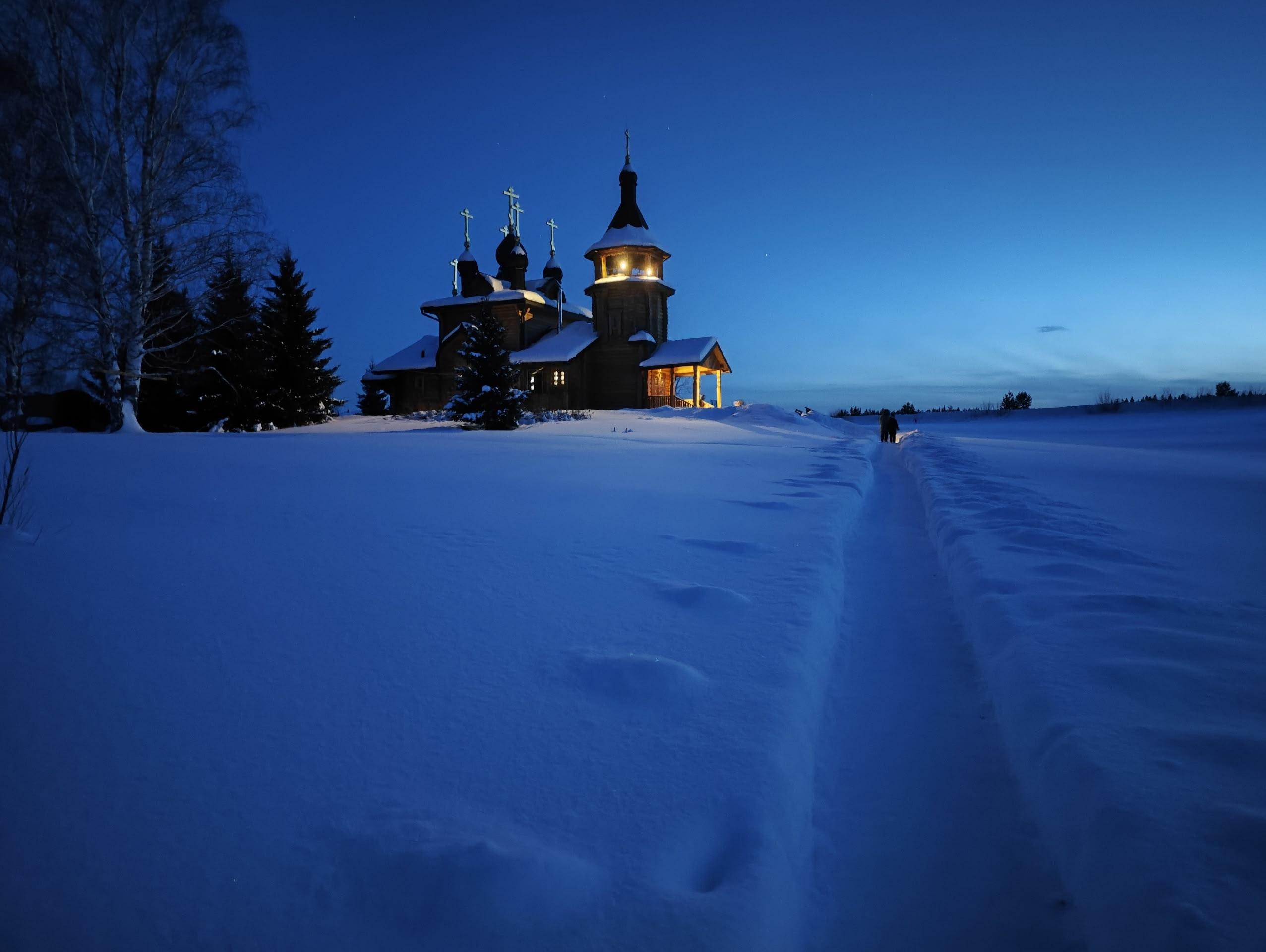 Часть маршрута участники прошли на лыжах. Автомобили были оставлены недалеко от урочища Гигино, рядом с руинированной часовней Флора и Лавра конца XIX века. Этот участок позволил буквально «прочитать» ландшафт: понять, почему тракт проходил именно здесь.
